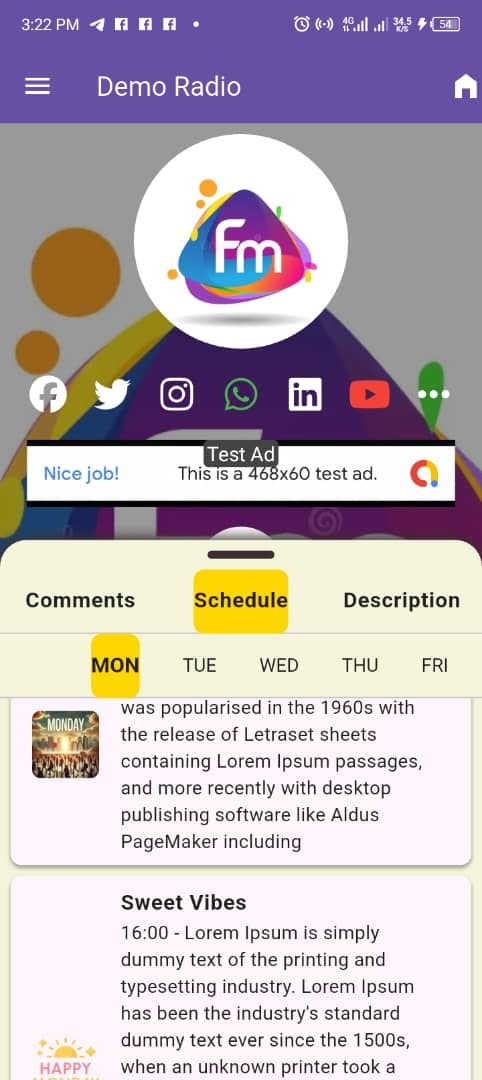 6. DAILY SCHEDULES:Easily upload and manage your TV station’s daily program schedule from the backend. Viewers will see today’s lineup directly in the app.